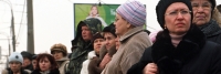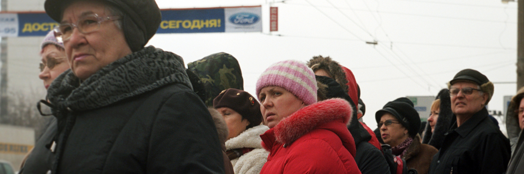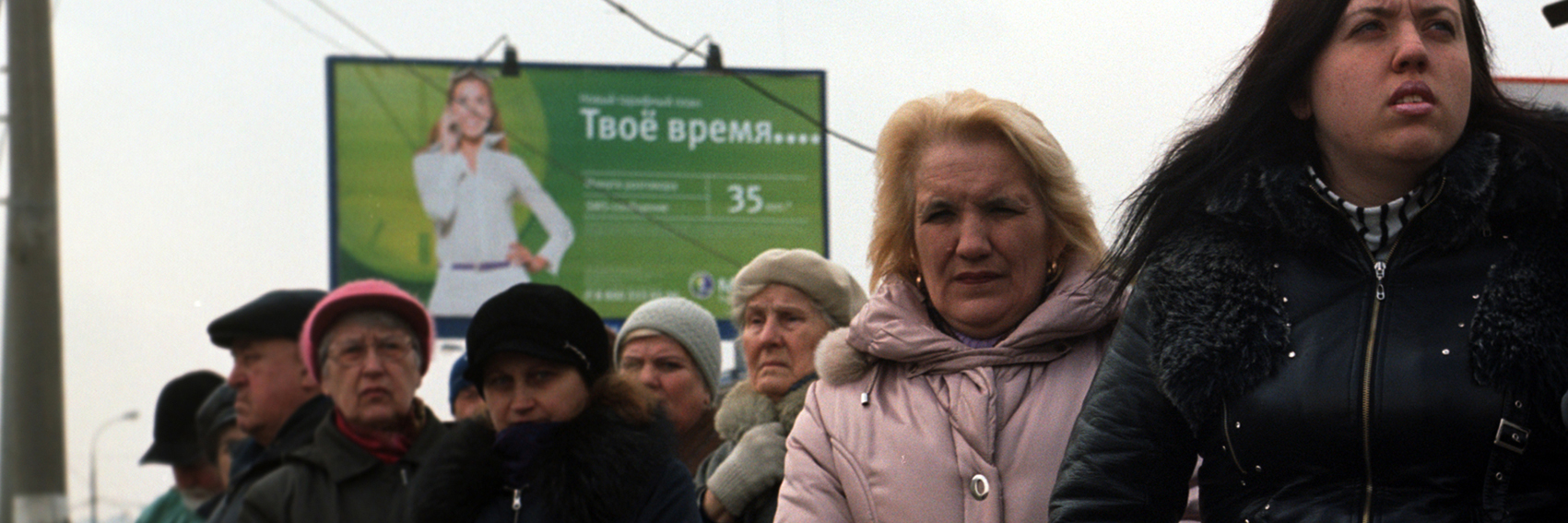 "...мы видим людей, ждущих на остановке своего автобуса. Их взгляды устремлены вдаль. В этих взглядах тоска и недовольство сливаются с ожиданием. [...] Это взгляды в завтра, оставляющие сегодня позади. В этом отношении особенно примечательна одна из фотографий серии, где на фоне, за спинами людей, виднеется оказавшаяся вне фокуса, как будто расплывающаяся, рекламная растяжка со словом «СЕГОДНЯ!»."